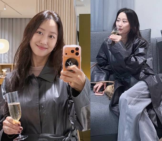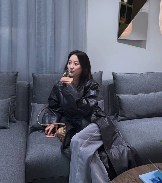 공개한 사진에서 전혜빈은 광택감이 은은하게 도는 다크 그레이 컬러의 가죽 트렌치코트를 착용해 고급스러우면서도 모던한 무드를 연출했다.