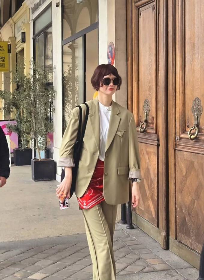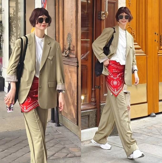 모델 송경아, 파리에서 센스 100점! 반다나 두른 하이패션 감각 프렌치 슈트룩