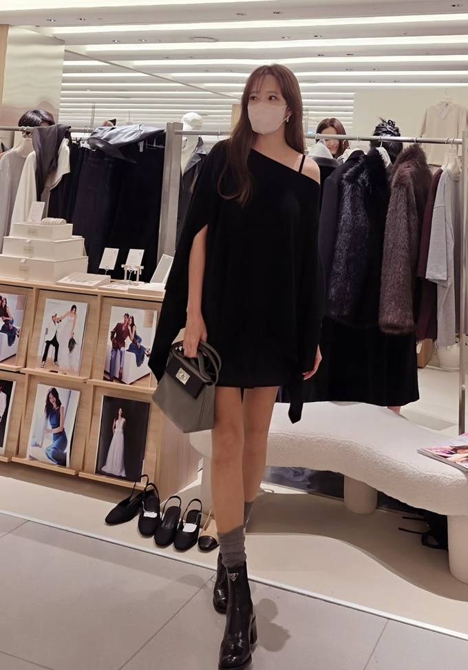공개한 사진에서 소유진은 어깨를 살짝 드러낸 원숄더 스타일의 블랙 케이프 톱과 미니 원피스를 매치한 나들이룩으로 우아하면서도 세련된 분위기를 연출했다.