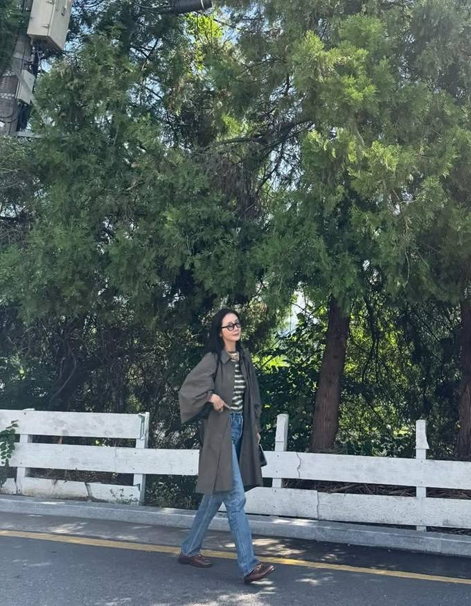 공개한 사진에서 최지우는 루즈하게 떨어지는 여유로운 실루엣의 카키빛 트렌치코트로 가을 무드를 한껏 살렸다.