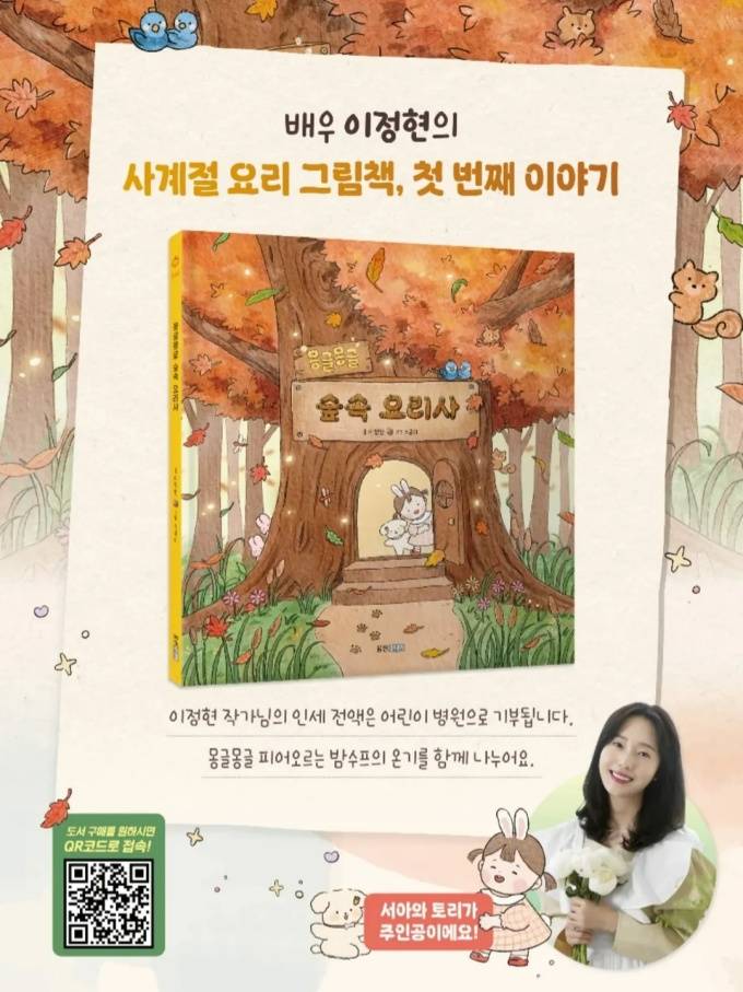 배우 이정현이 꼭 닮은 3살 딸과 함께 요리 그림책 ‘몽글몽글 숲속 요리사’ 발간과 함께 예쁜 마음을 전했다.