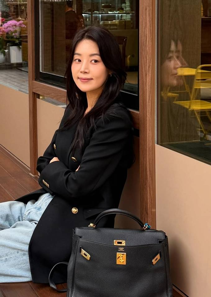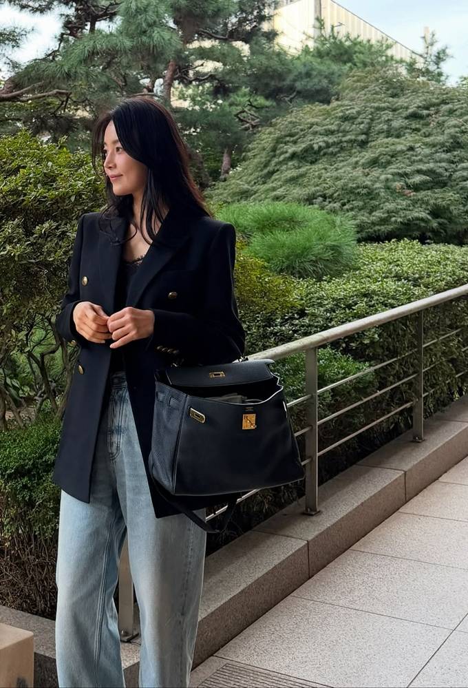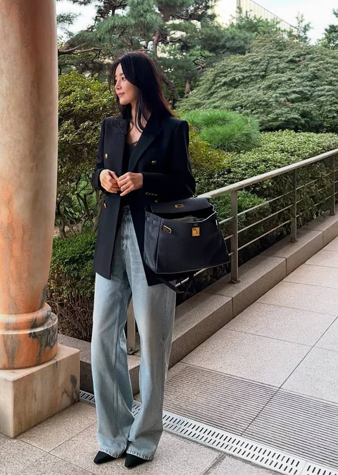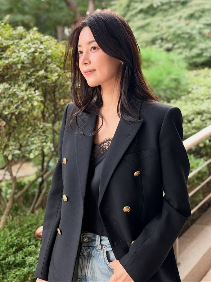 한지혜, 골드 버튼 재킷이 완벽! 딱 떨어진 재킷 모던 클래식 멋쟁이 가을 외출룩
