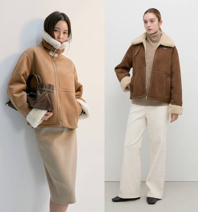 스웨이드 무스탕의 매력은 스타일과 보온성을 동시에 누릴수 있는 겨울 아우터의 정석으로 브라운 컬러부터 크림, 올리브 같은 뉴트럴 컬러까지 다양한 컬러로 출시돼 선택의 폭도 넓어졌다.