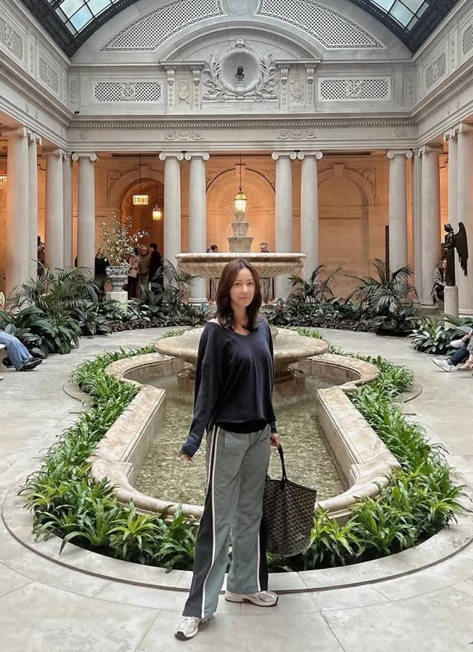 배우 손태영이 뉴욕에서 트레이닝 팬츠 애슬레저룩으로 꾸안꾸 미모를 발산했다.