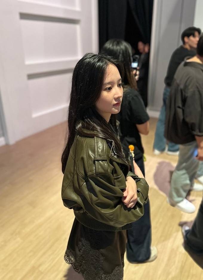 공개한 사진에서 박정연은 레이스 슬립 원피스에 카키 톤의 가죽 재킷을 매치해 러블리하면서도 시크한 걸크러시룩을 완성했다.