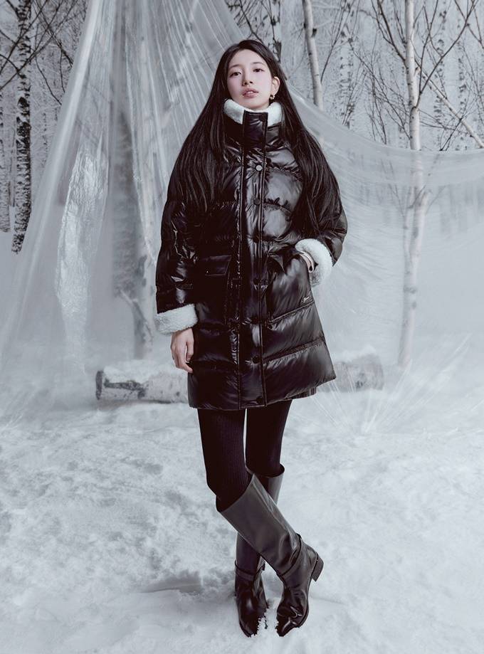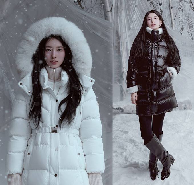캠페인 화보 속 수지는 부드럽고 풍성한 볼륨감이 돋보이는 화이트 후드 퍼 롱패딩룩을 비롯해 보온성과 스타일을 갖춘 하이넥 글로시 롱패딩, 무스탕 재킷, 블랙 가벼운 브라운 푸퍼 재킷 등다채로운 패딩룩으로 겨울 여심을 사로잡았다.