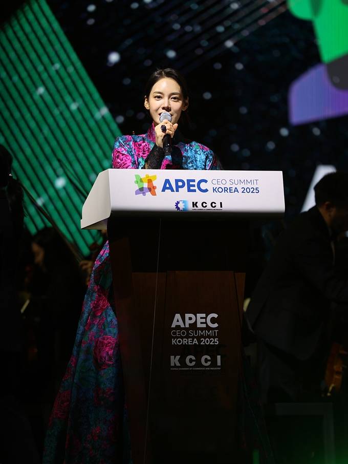 이어 29일과 30일 진행된 ‘APEC CEO 서밋 코리아 2025’에서는 각각 차분한 그린 컬러의 투피스 차림과 베이지 컬러의 수트 차림으로 등장해 회의 일정 전반에 걸쳐 고급스러운 영어로 자연스러운 진행을 펼쳤다.
