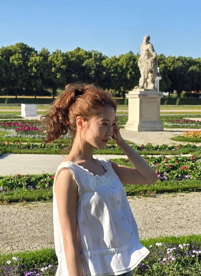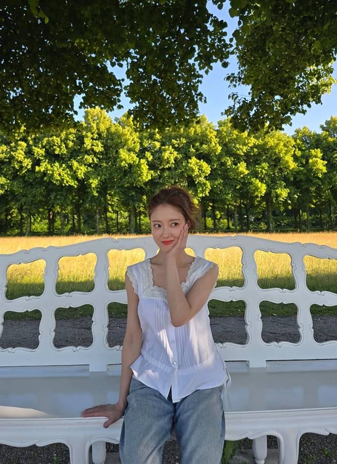 공개한 사진에서 이세영은 유럽의 로즈넉한 공원을 배경으로 레이스 디테일이 돋보이는 화이트 민소매 블라우스에 연청 데님 팬츠를 매치한 여행룩으로 가벼운 봄날의 감성을 드러냈다.