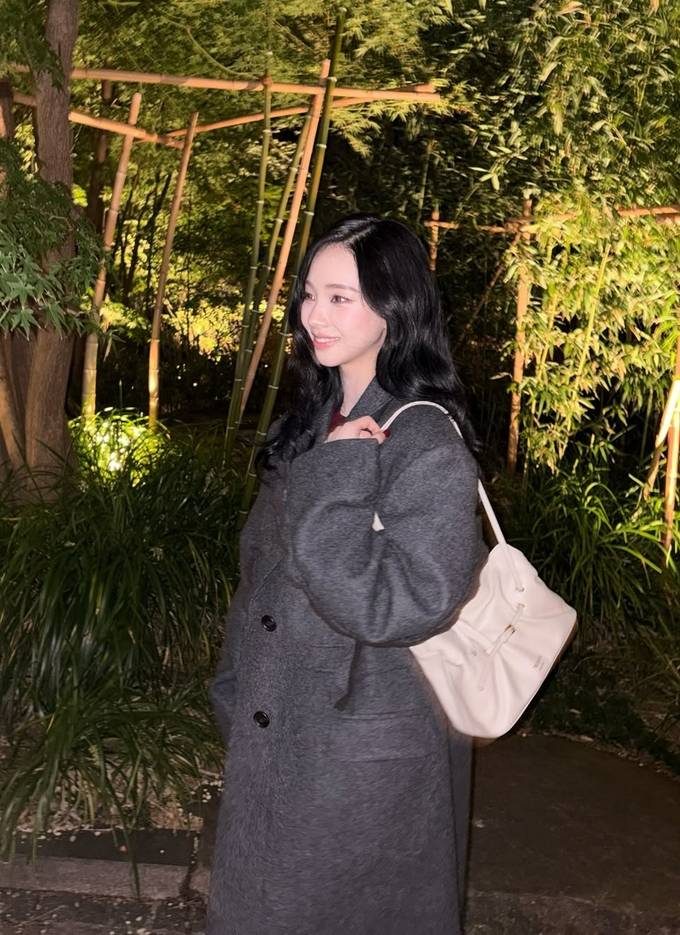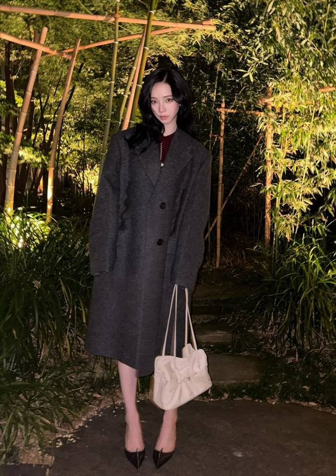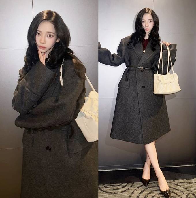 공개한 사진에서 카리나는 차분한 차콜 그레이 컬러의 오버핏 코트를 착용해 세련된 분위기를 자아냈다. 허리를 슬림하게 잡아주는 벨트 디테일로 실루엣을 강조해 시크함 속에서도 여성스러운 라인을 살렸다.