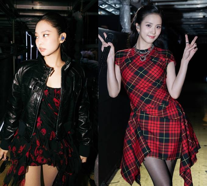 그룹 블랙핑크(BLACKPINK) 멤버 제니와 지수가 <데드라인(Deadline)> 월드 투어 태국 첫날 공연에서 선보인 강렬한 무대 의상이 화제를 모았다.