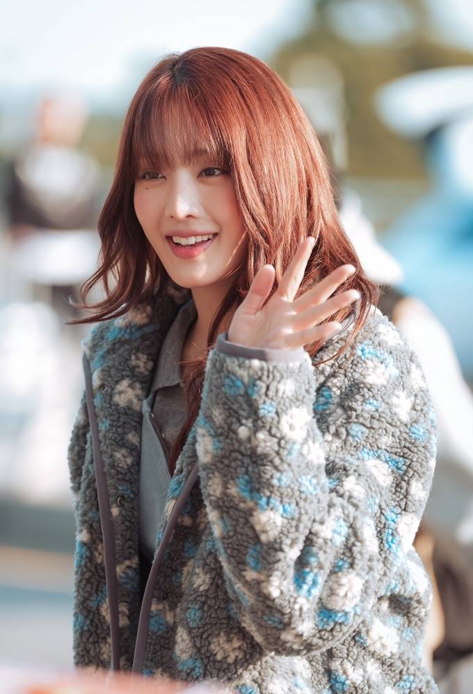 그룹 아이들(i-dle) 멤머 민니가 포근한 플리스 패딩 점퍼룩으로 공항을 밝혔다.