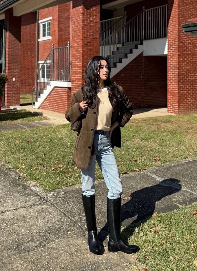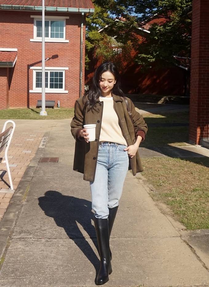 공개한 사진에서 손연재는 브라운 톤의 스웨이드 재킷에 아이보리 니트와 연청 데님을 매치하고 무릎까지 올라오는 블랙 롱 부츠를 착용한 외출룩으로 클래식하면서도 단정한 스타일을 완성했다.