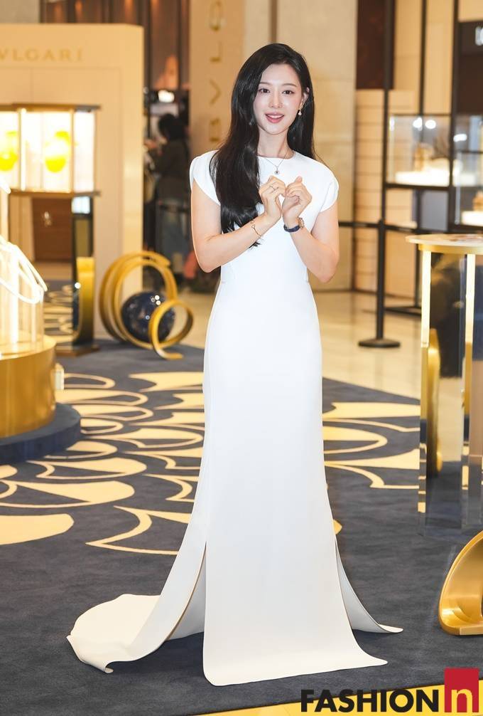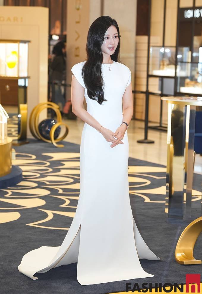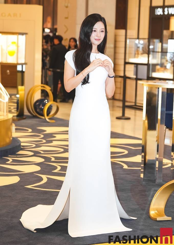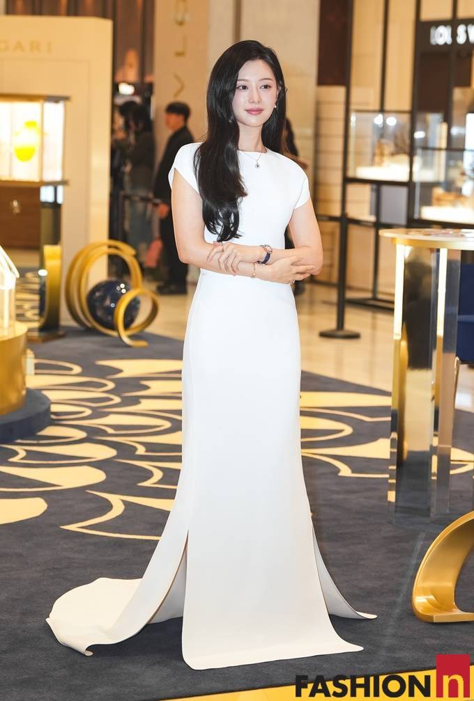배우 김지원이 우아한 화이트 드레스룩으로 판교 백화점을 밝혔다.