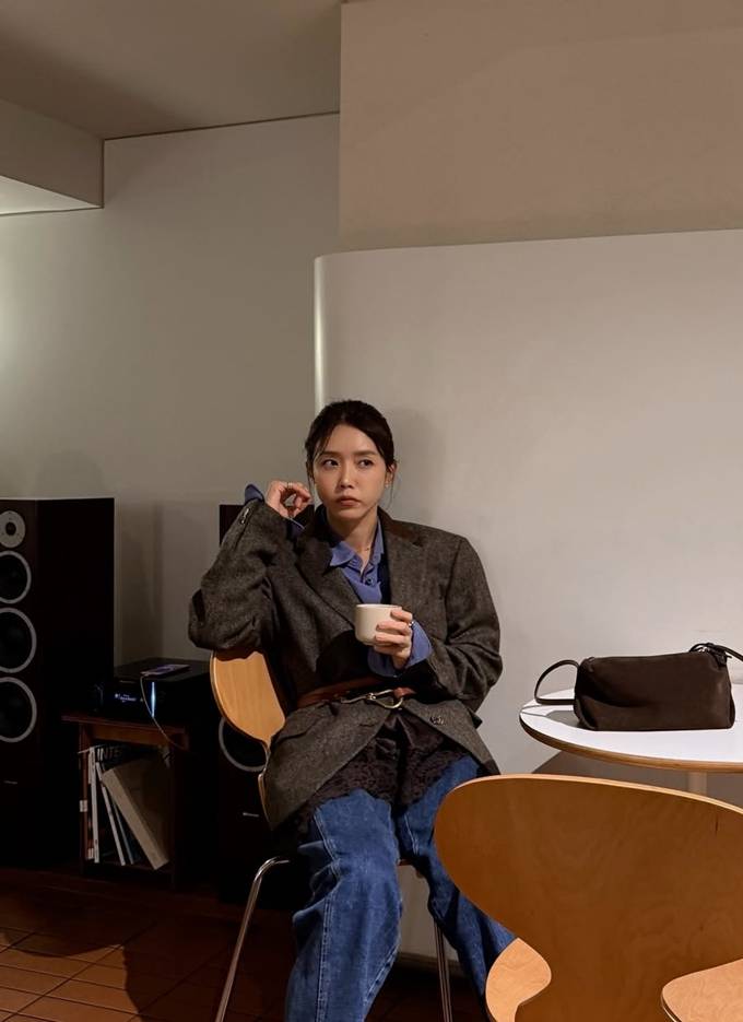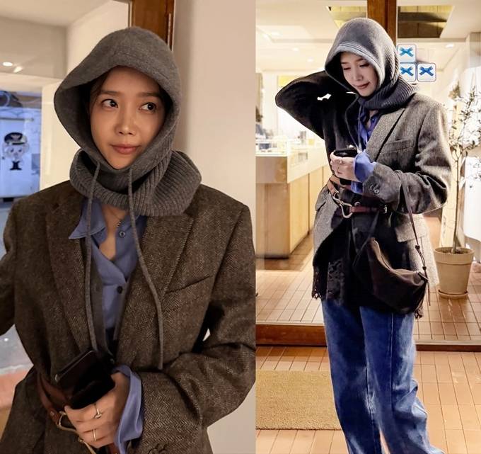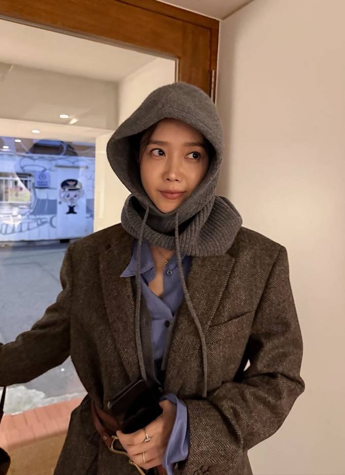 공개한 사진에서 채정안은 클래식한 브라운 헤링본 재킷 안에 블루 셔츠를 레이어드하고, 그 위에 그레이 니트 바라클라바를 착용해 세련된 밤 외출 스타일을 연출했다.