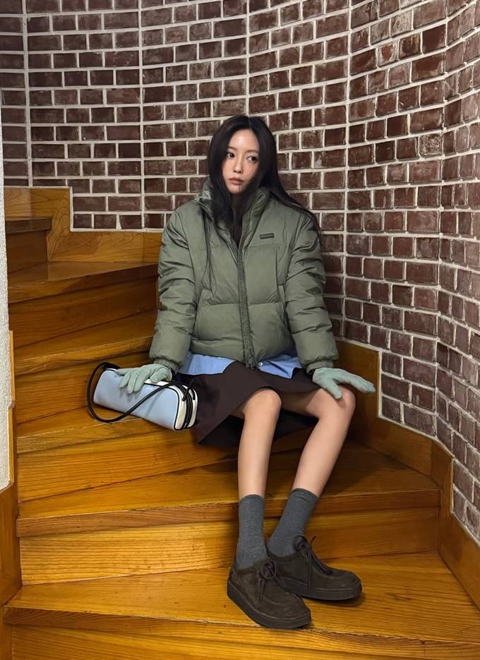 공개한 사진에서 효민은 ‘초크 VS 민트’ 숏패딩을 입고 실용적이면서도 감각적인 패딩 스타일을 선보였다.