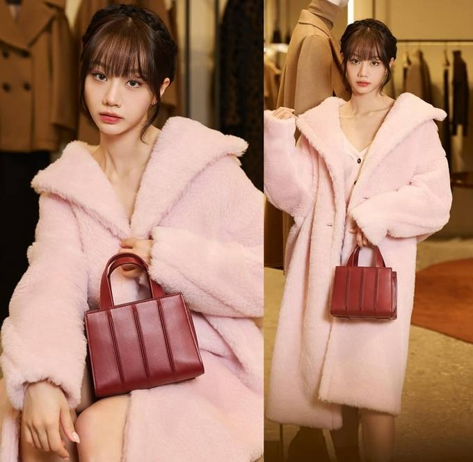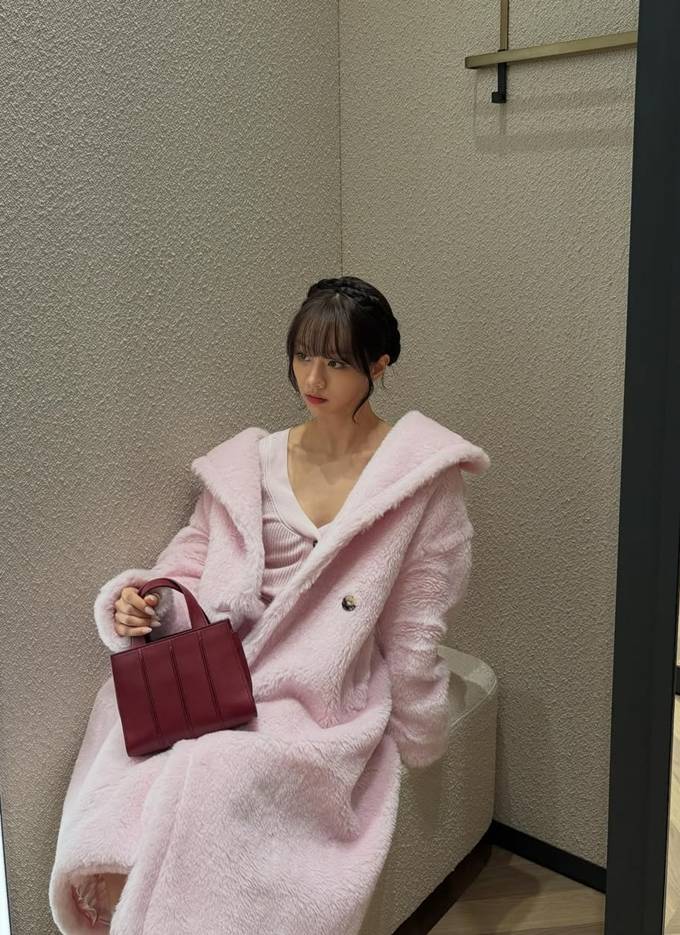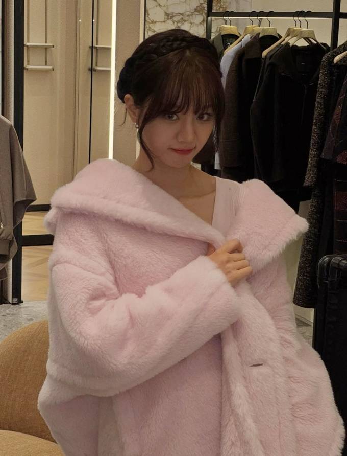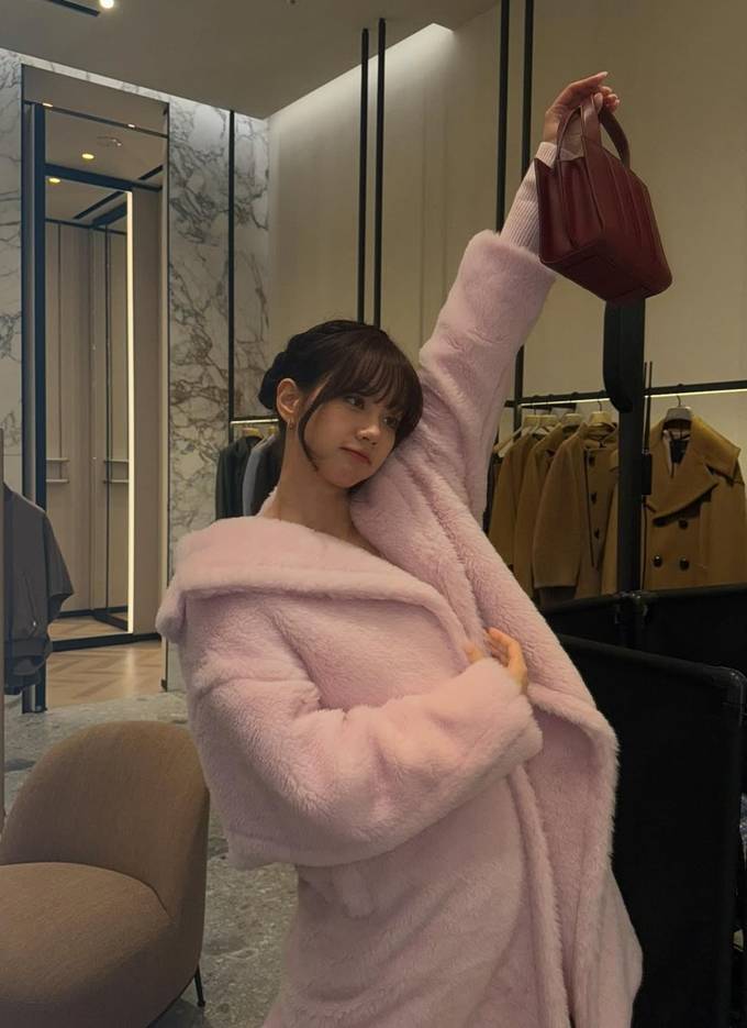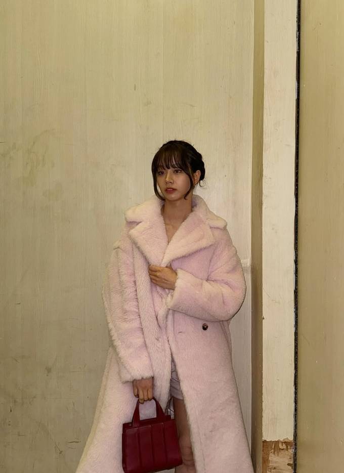 공개한 사진에서 혜리는 루즈핏에 포근한 질감의 연핑크 컬러 테디베어 퍼 코트를 걸치고 부드럽고 따뜻한 무드를 완성했다.