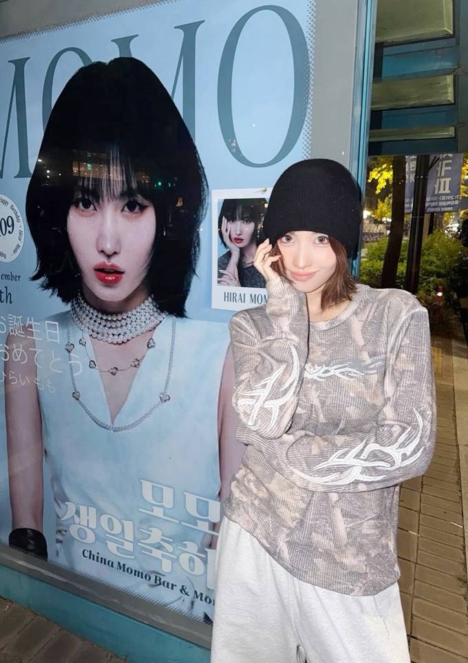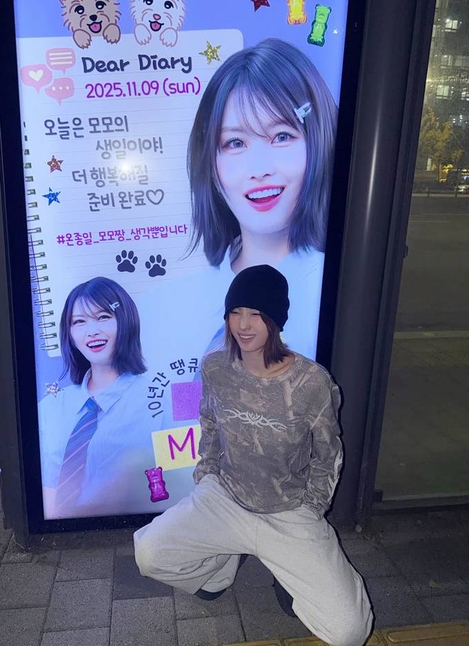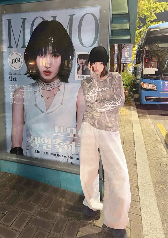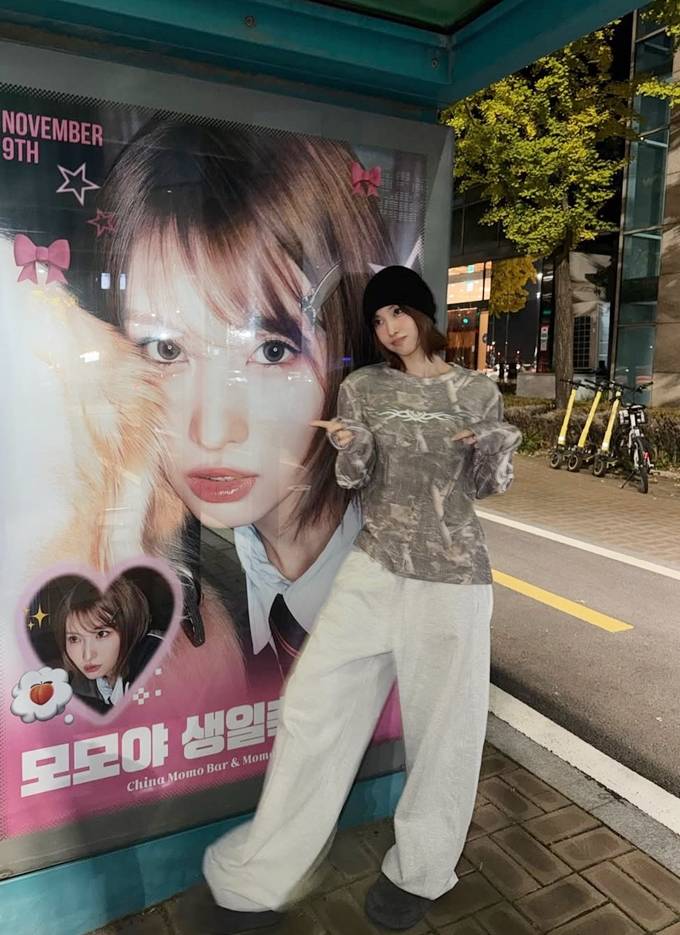 3. 3.트와이스 모모, 팬들 생일 축하에 폭풍감사! 생일 광고 앞에서 감성 폭발 스트릿룩