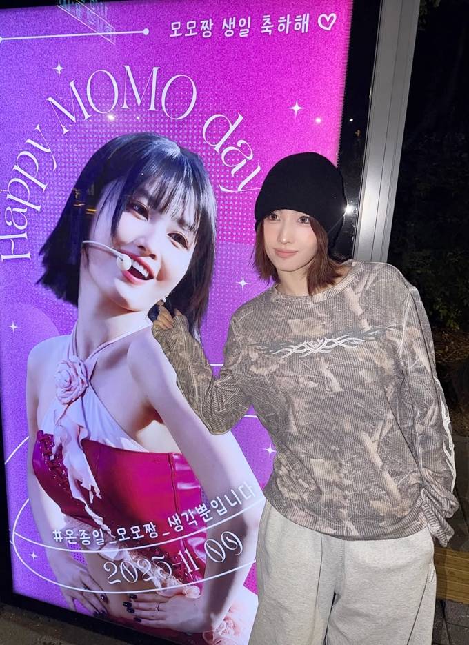 모모는 9일 자신의 채널에 “my birthday Thank you”라는 글과 함께 팬들이 준비한 대형 생일 광고 앞에서 들뜬 마음과 진심이 담긴 포즈로 감사 인사를 전했다.