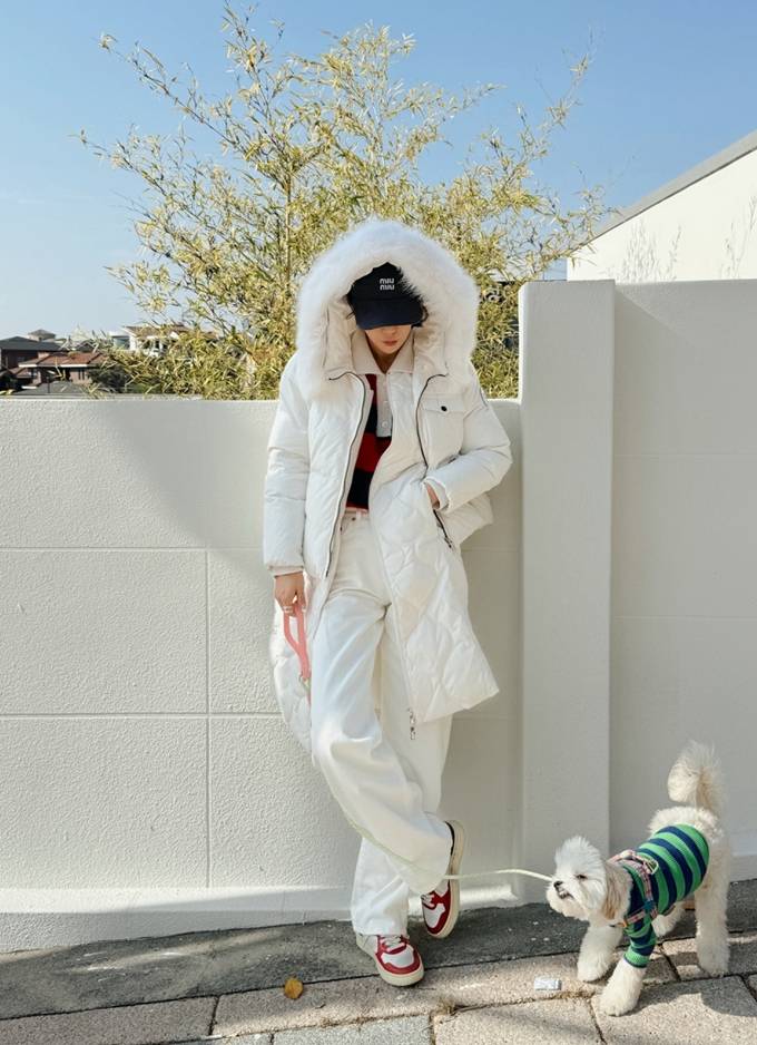 지난 10월 에코 퍼 재킷을 입어 베스트 제품에 등극시킨 기은세가 이달에는 화이트 컬러의 더블 레이어 다운을 활용한 편안하고 고급스러운 겨울 데일리룩을 선보였다.