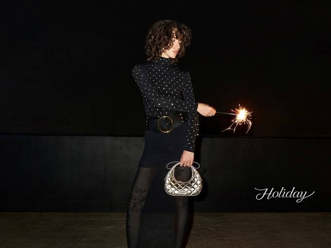 진주 장식 가방부터 반짝이는 힐까지, 풍부한 텍스처와 광택 소재로 마법 같은 홀리데이룩 제안