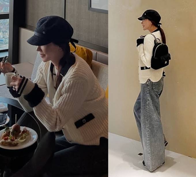 공개한 사진에서 정은은 아이보리 컬러의 니트 카디건에 와이드 데님 팬츠를 매치해 편안하면서도 트렌디한 외출룩을 연출했다.
