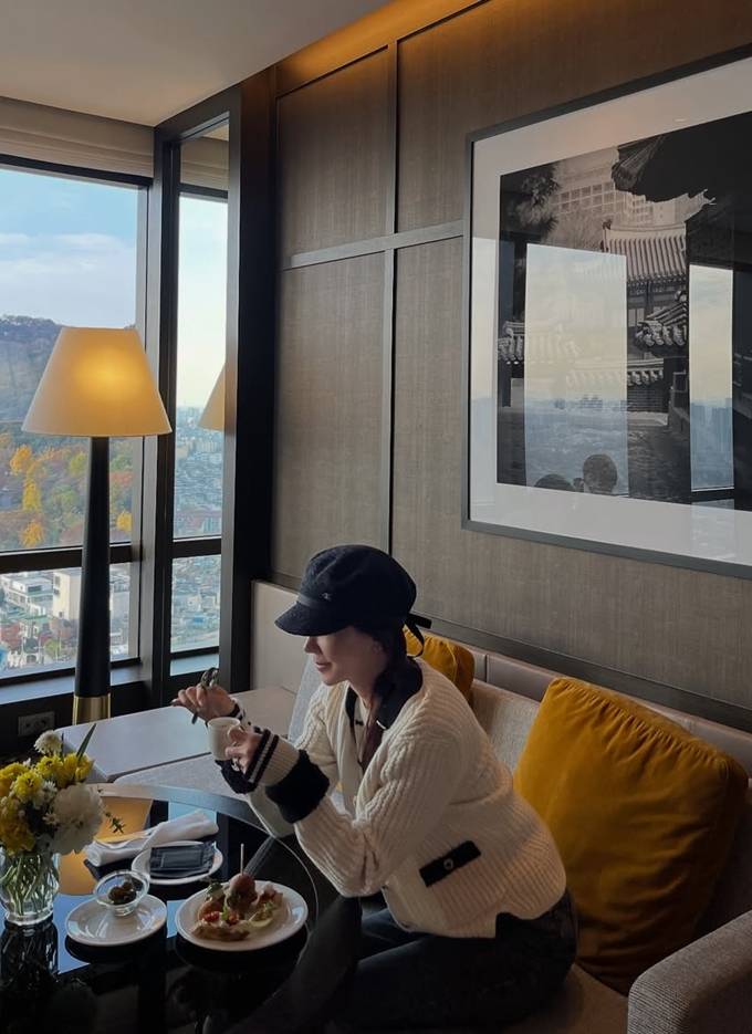 배우 김정은이 우아하면서도 힙한 카페 외출룩으로 시선을 사로잡았다.