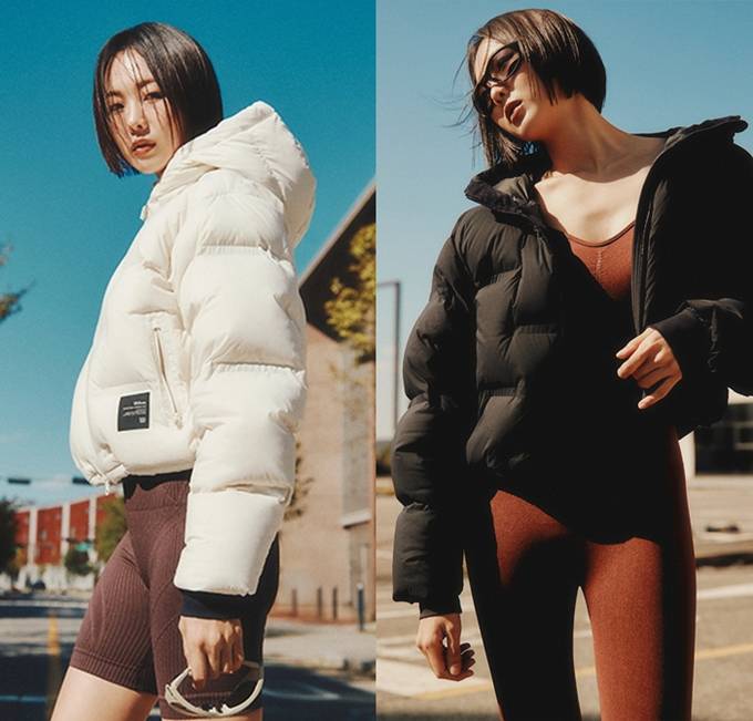 금새록은 다운 패딩 재킷에 레깅스를 매치해 웰니스 무드와 함께 액티브하면서도 세련된 애슬레저룩을 선보였다.