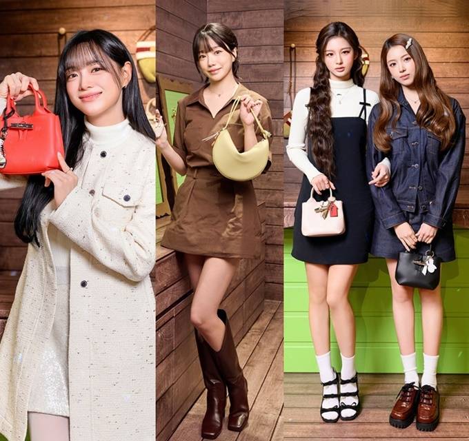 엔믹스 설윤과 지우는 각기 다른 스타일의 원피스에 르 로조 탑 핸들백을 매치해 사랑스러운 비주얼을 뽐냈으며, 키와 아이린은 롱샴의 아이템들을 자신만의 스타일로 소화하며 남다른 패션 감각을 선보였다.
