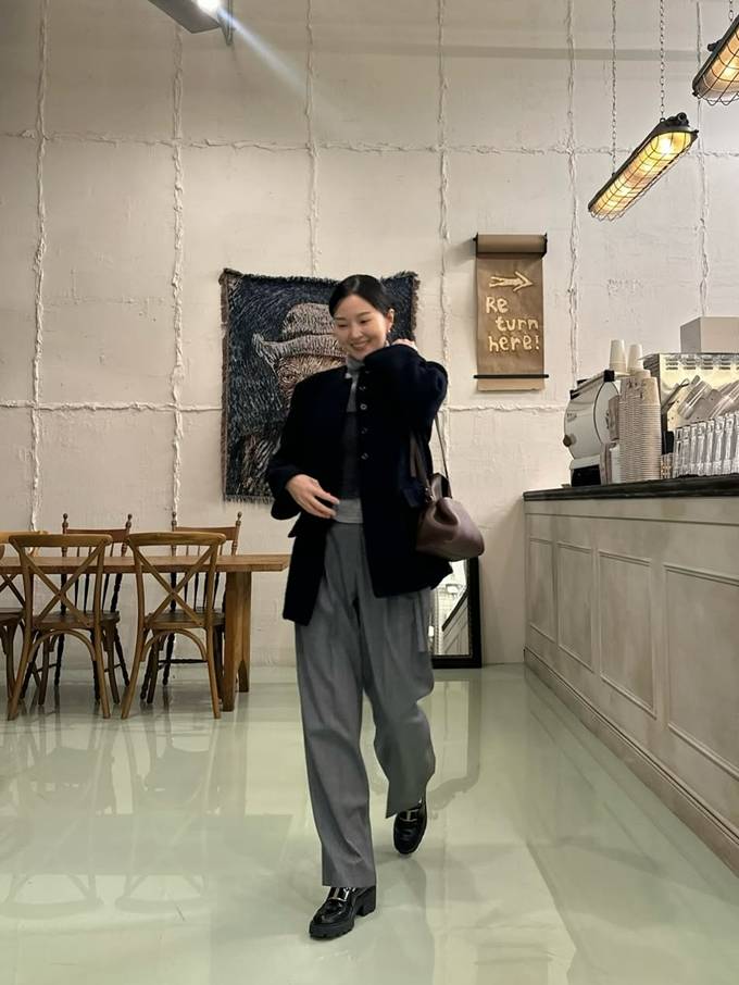 류이서, 11월 가을 하객 패션의 정석! 과한 디테일 No 그레이 톤온톤 레이어드 하객룩
