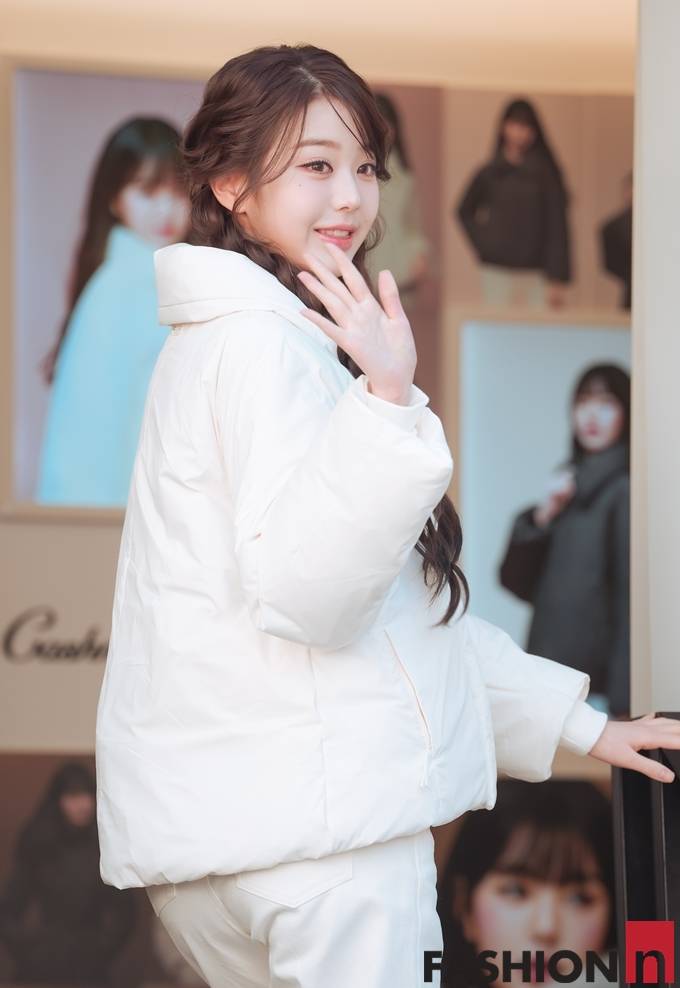 장원영은 16일 오전 서울 성수동에 위치한 한 카페 야외테라스에서 열린 아웃도어 패션 브랜드 아이더 팝업스토어 오픈 행사에 참석했다.