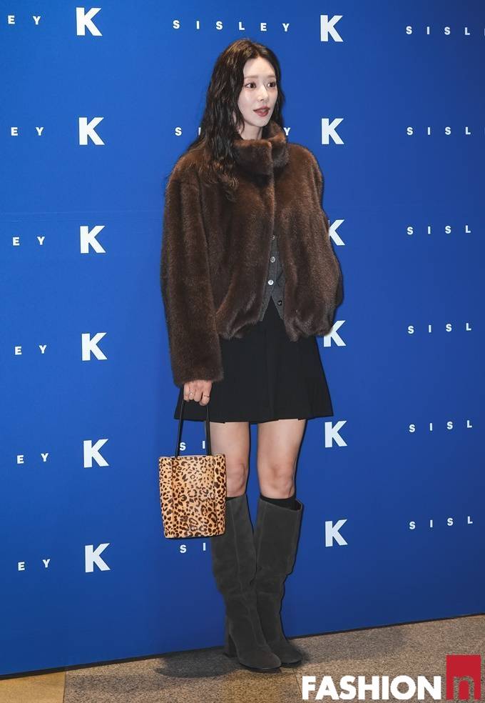이날 이주빈은 크롭 기장의 퍼 재킷과 그레이 이너 카디건, 여기에 롱 스웨이드 부츠와 호피 무늬의 백으로 포인트를 준 감각적인 윈터룩으로 눈길을 사로잡았다.