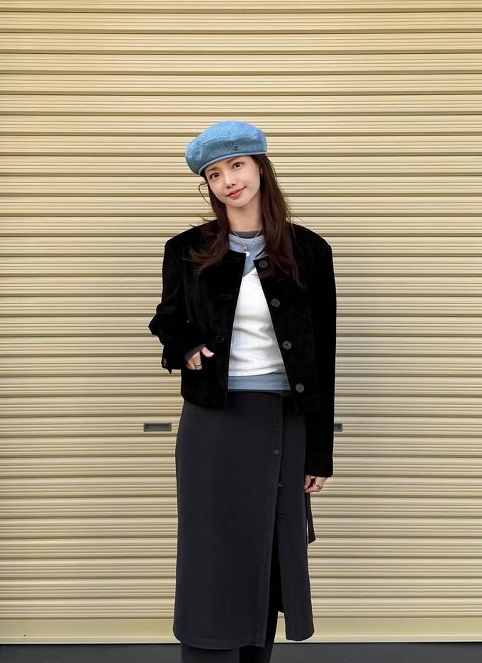 공개한 사진에서 하연수는 블루 컬러의 베레모에 그레이 롱 코트를 매치한 산책룩으로 가을 분위기를 한껏 담아냈다.