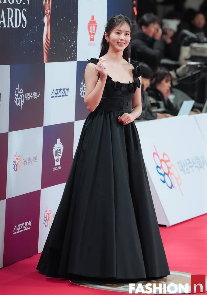 배우 김소현이 꽃장식이 돋보이는 우아한 블랙 드레스룩으로 청룡 레드카펫을 수놓았다.