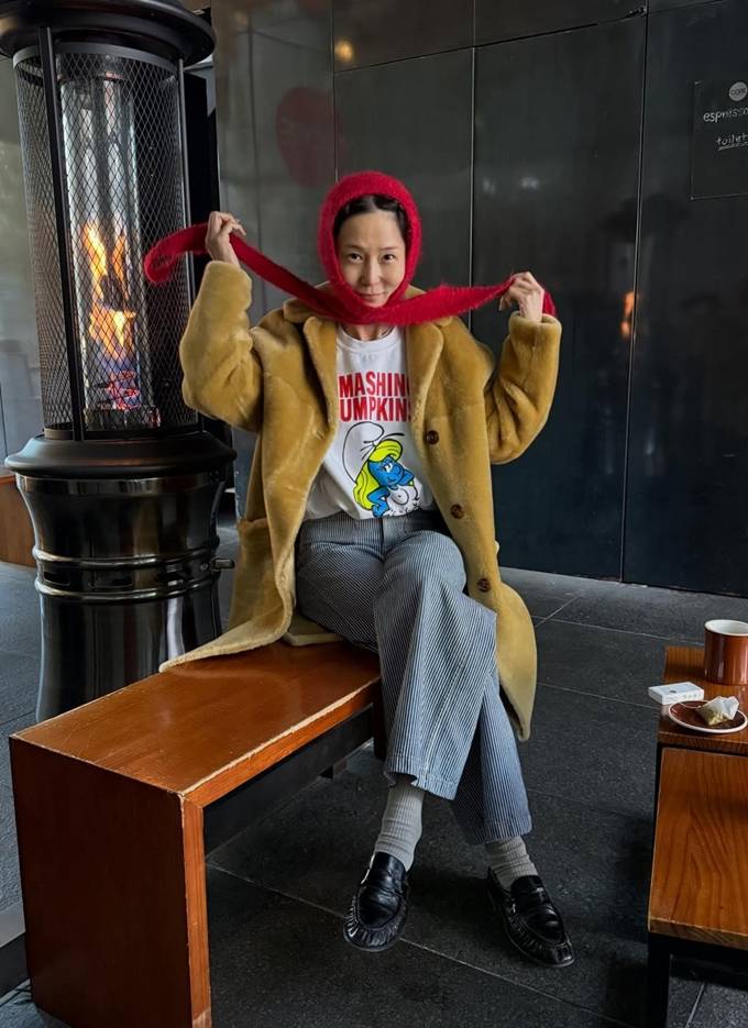 공개한 사진에서 김나영은 빨간색 머플러를 머리에 두르고 옐로 페이크 퍼 코트를 착용한 외출룩으로 귀여우면서도 캐주얼한 데이트 스타일을 완성했다.