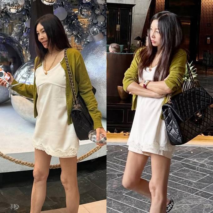 공개한 사진에서 황신혜는 늘씬한 각선미가 드러난 화이트 원피스에 연두색 컬러의 니트 카디건을 매치한 여행룩으로 60대 나이가 믿기지 않는 청순하면서도 발랄한 감성을 드러냈다.