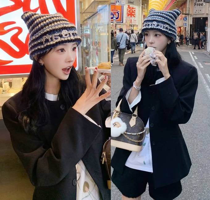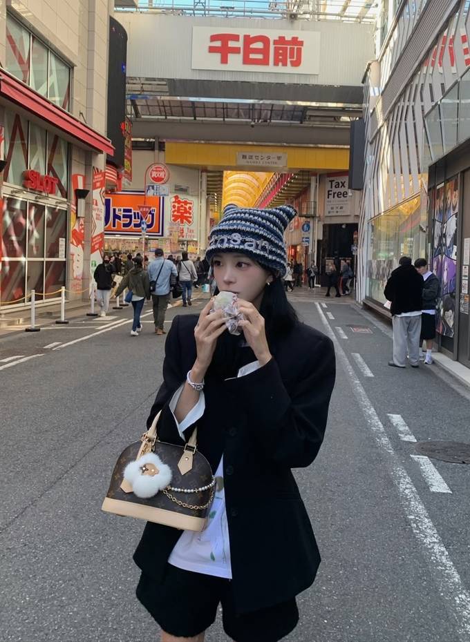 최준희, 오사카의 귀여운 아깽이 잇걸! 고양이 모자와 슬림 재킷 찰떡 일본 여행룩