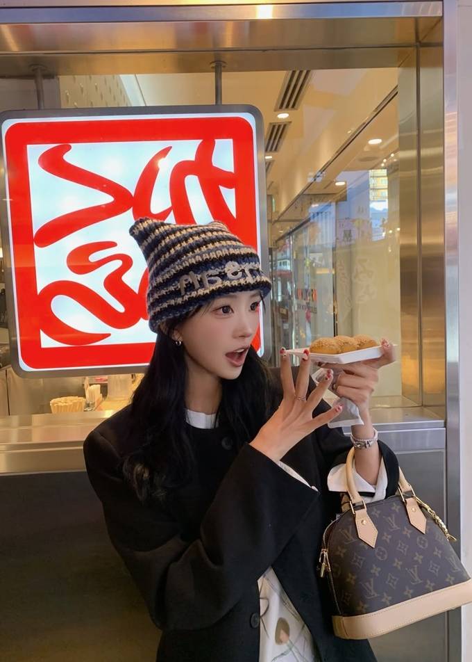 공개한 사진에서 최준희는 귀여운 고양이 니트 햇에 슬림한 블랙 재킷을 매치한 스트릿룩으로 귀여우면서도 시크한 여행 스타일을 완성했다.