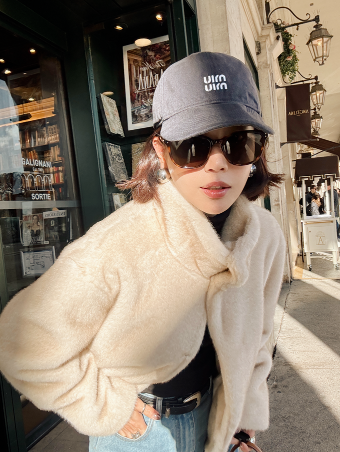 기은세는 아이보리 컬러 퍼 재킷을 일상룩으로 활용해 자연스러우면서도 캐주얼한 스타일을 완성했다.