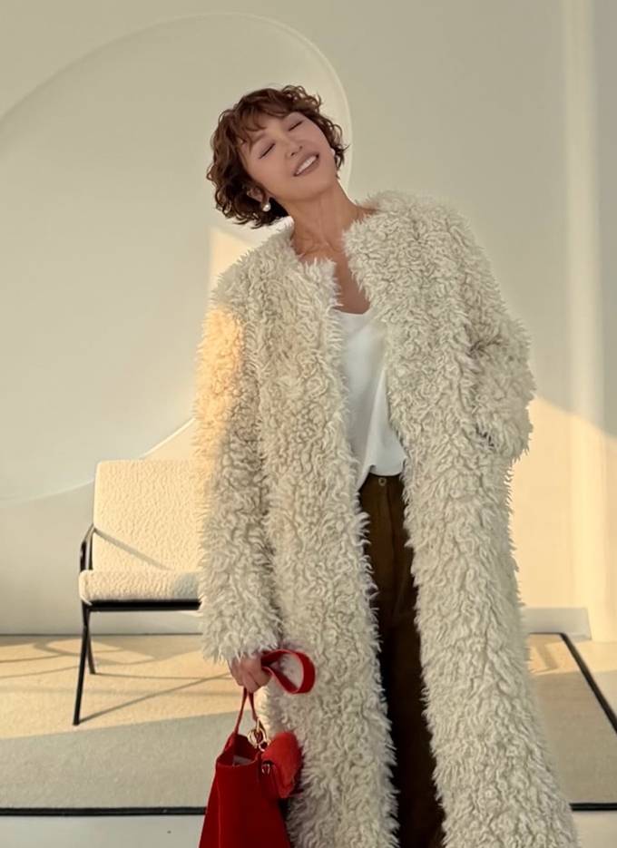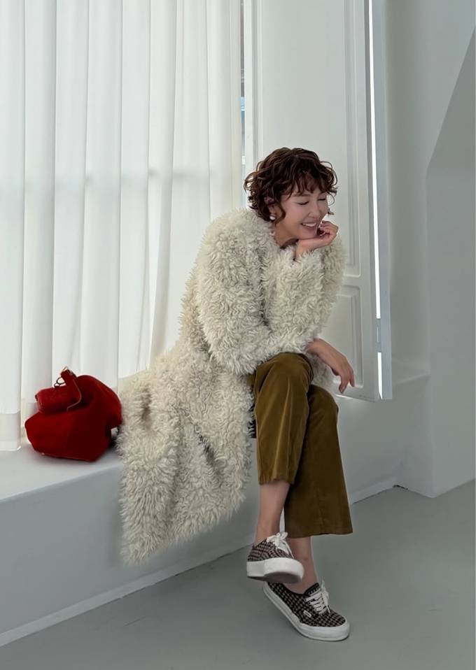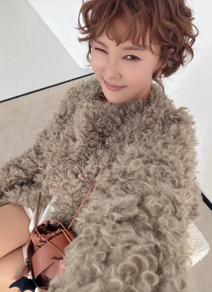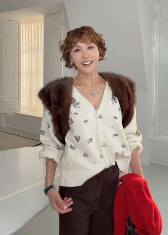 공개한 사진에서 최은경은 양털 퍼 코트와 브라운 퍼 베스트, 브라운 퍼 카라와 니트 카디건으로 스타일링한 포근하고 스타일리시한 모임룩을 선보였다.