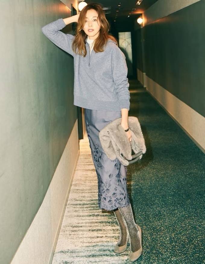 격투기 선수 추성훈의 아내이자 일본 톱모델인 야노시호가 니트 스웨터와 니트 머플러로 단아한 품격의 겨울룩을 완성했다.