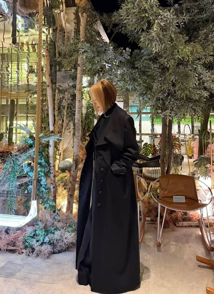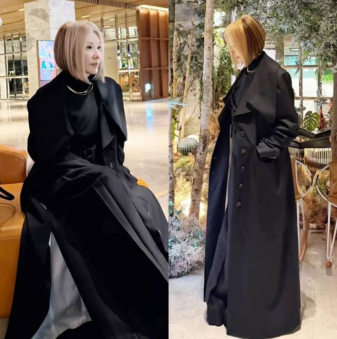 공개한 사진에서 이미숙은 갈색 숏컷 헤어 스타일에 블랙 터틀넥과 블랙 플리츠 롱 스커트를 입고 여기에 오버핏 블랙 트렌치코트를 매치한 출근룩으로 범접할 수 없는 왕언니의 카리스마를 드러냈다.