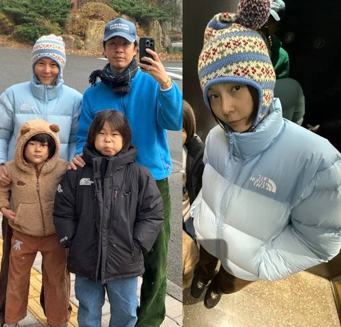 방송인 김나영이 남편 마이큐까지 온 가족이 노출된 패딩과 뽀글이 완전체 패밀리룩으로 눈길을 사로잡았다.