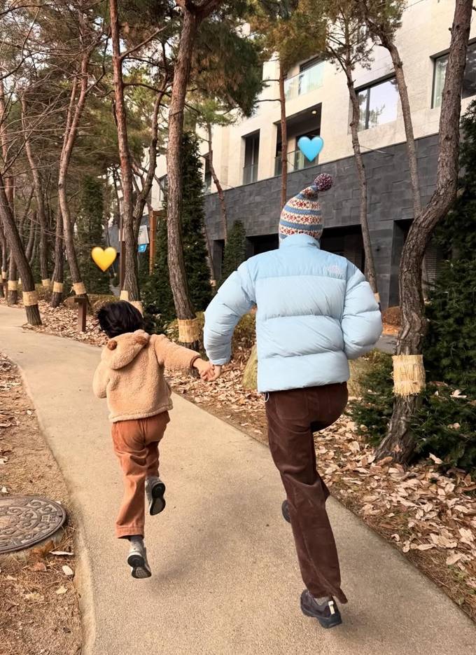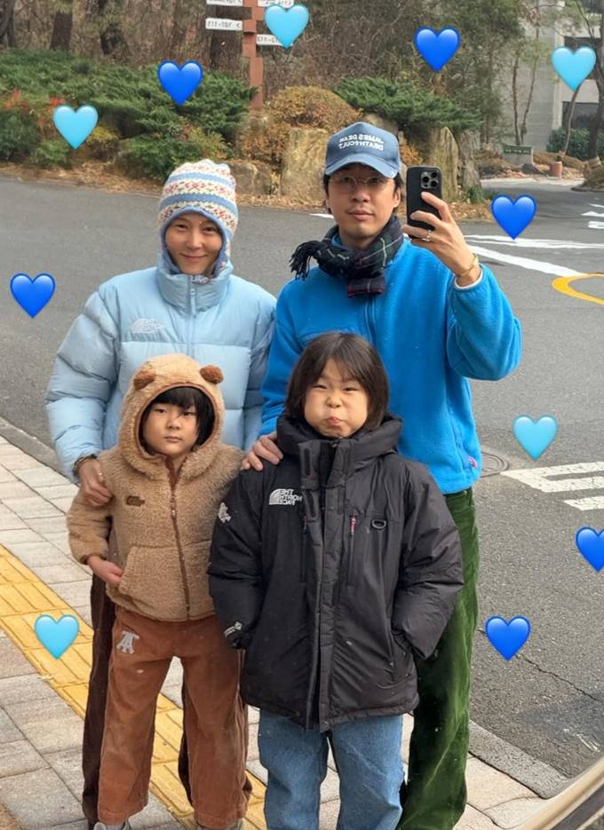 또 신우와 이준은 패딩과 뽀글이 후드 재킷을, 남편 마이큐는 뽀글이 집업 재킷에 머플러와 볼캡을 매치한 산책룩으로 훈훈한 패밀리룩을 완성했다.