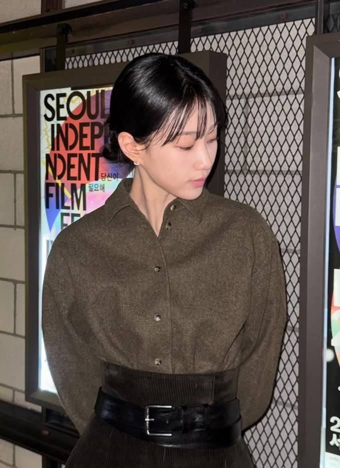 공개한 사진에서 하윤경은 카키 컬러의 롱 스커트에 블랙 벨트를 매치하고 동일한 컬러의 셔츠를 매치한 톤온톤 나들이룩으로 더 길어 보이는 슬림한 실루엣을 강조했다.