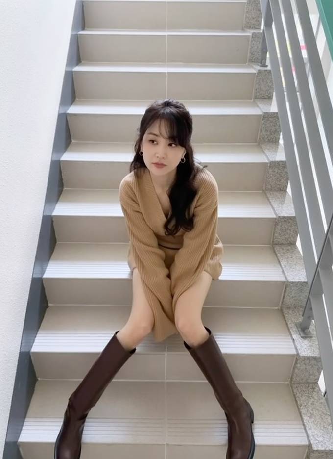 배우 박하선이 한번에 꽂힌 오버핏 니트 스웨터를 입고 과감한 하의실종 출근룩을 선보였다.