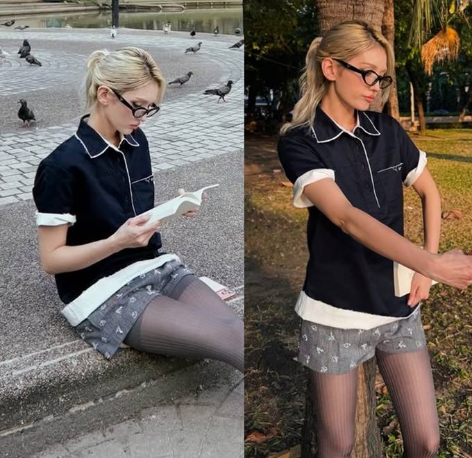 전소미, 추위 탈출 싱가포르! 앉아만 있어도 화보 쇼츠에 뿔테 안경 핫한 긱시크룩