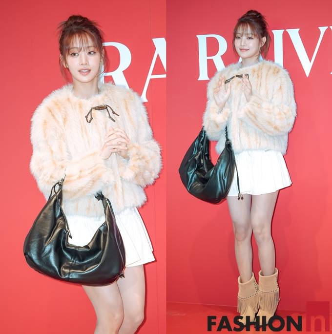이날 민니는 올려 묶은 머리에 포근한 퍼 재킷을 입고 늘씬한 각선미가 드러난 미니 스커트를 매치한 나들이룩으로 러블리하면서도 럭셔리한 겨울 스타일을 완성했다.