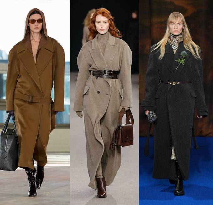 스텔라 맥카트니는 2025 F/W 컬렉션에 허리선이 낮은 벨티드 스타일링의 코트, 막스 마라, 버버리는 오버핏 실루엣의 벨티드 코트룩으로 드라마틱한 멋을 선사한다.
