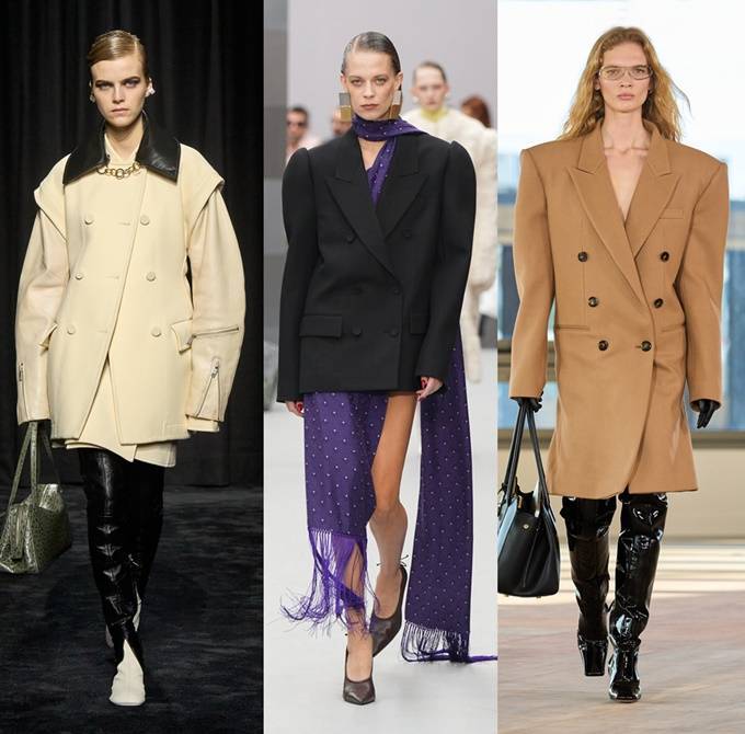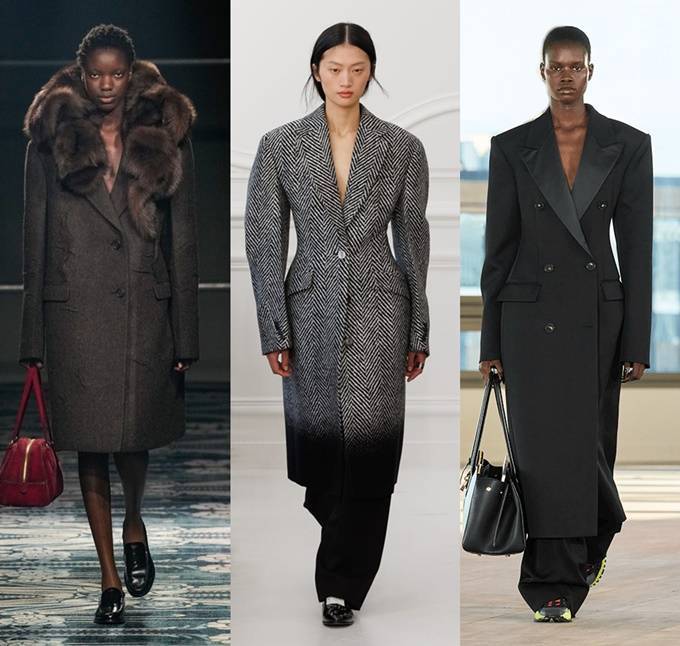 프라다의 퍼 칼라 테일러드 코트를 비롯해 캘빈클라인의 아워글라스 실루엣 체크 코트, 스텔라 맥카트니의 더블 맥시 코트는 정교하게 재단된 패턴과 고급스러운 소재감이 조화를 이루며 격식을 차려입은 듯한 시크한 멋과 우아함을 선사한다.