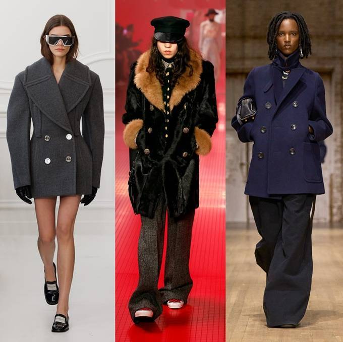 해군 군복에서 유래한 피코트(Pea Coat) 는 본래 클래식한 무드가 강했지만, 최근에는 활동적인 짧은 기장, 각진 어깨라인에 변형을 준 A라인 실루엣, 슬림핏 디자인으로 한층 트렌디하게 변주되며 시대를 초월하는 겨울 아우터로 사랑받고 있다.